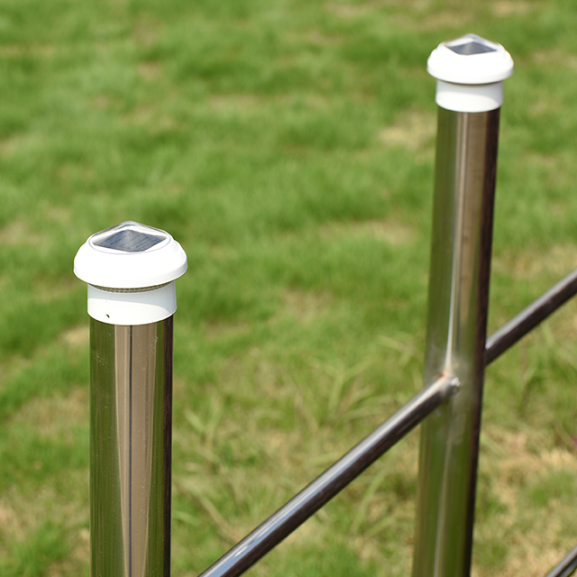 2211-CP1 WH プラスチックチェーンリンクフェンスソーラーポストキャップライトは、2.5 インチのチェーンリンクフェンスポスト用に設計された効率的で環境に優しい照明製品で、屋外スペースの装飾照明と安全照明のニーズに適しています。サイズは85x85x70 mmで、高品質のプラスチック素材で作られており、耐久性があり、風、雨、紫外線などの厳しい屋外環境に耐えることができます。ポストライトは、標準の 2.5 インチのフェンスポストに完全にフィットするように設計されています。追加の工具や複雑な操作を必要とせず、簡単かつ迅速に設置でき、庭、庭、私道、フェンスエリアに明るい光源をすぐに追加できます。